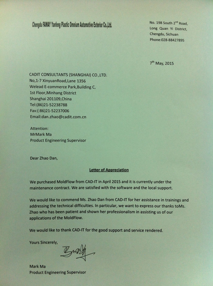 成都一汽富維-感謝函