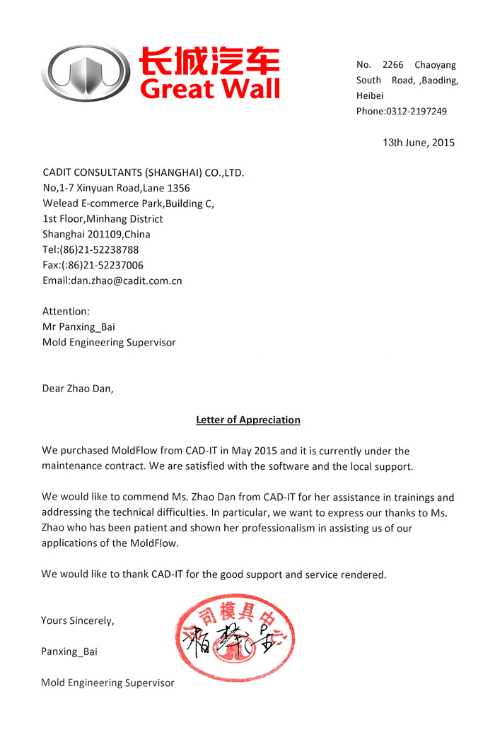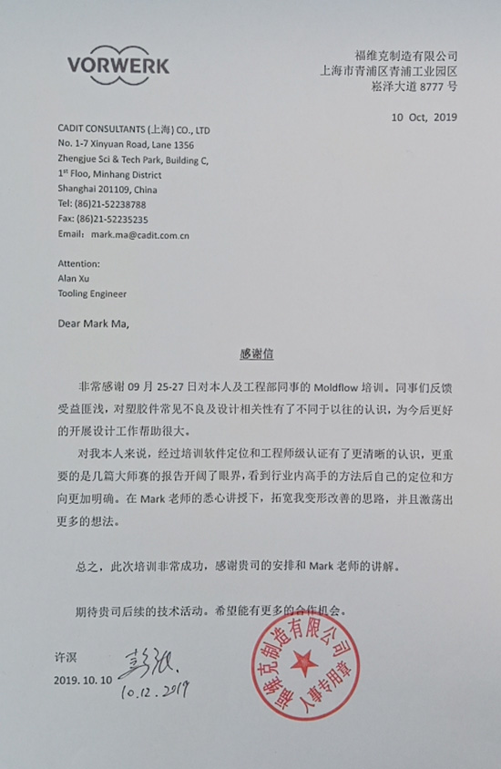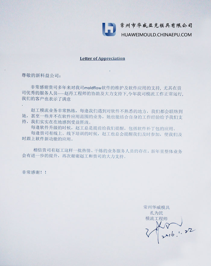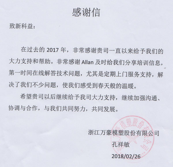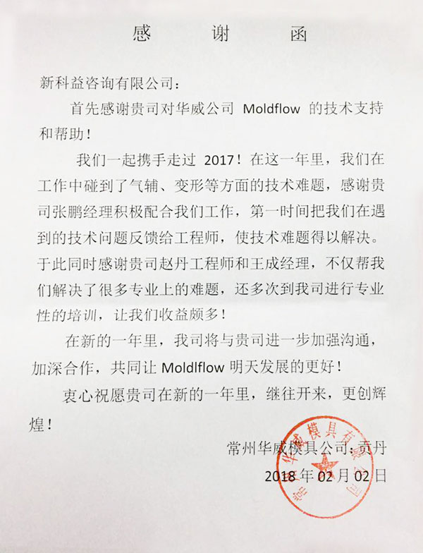 常州華威模具公司-感謝函