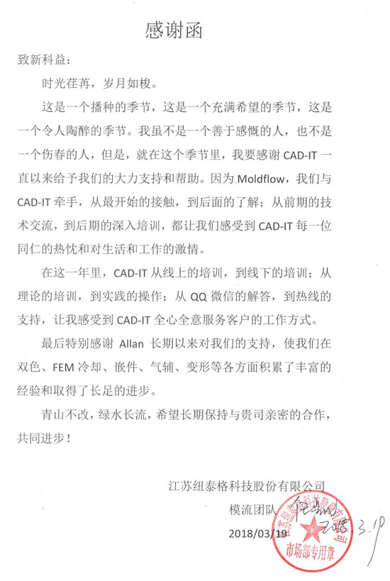 江蘇紐泰格有限公司-感謝函