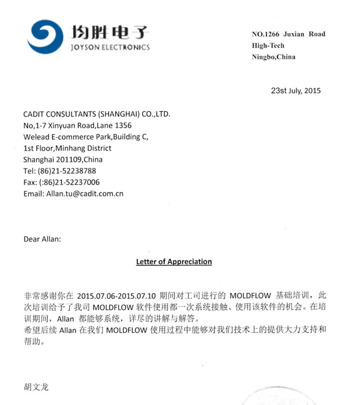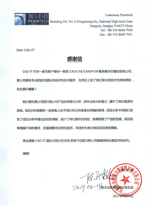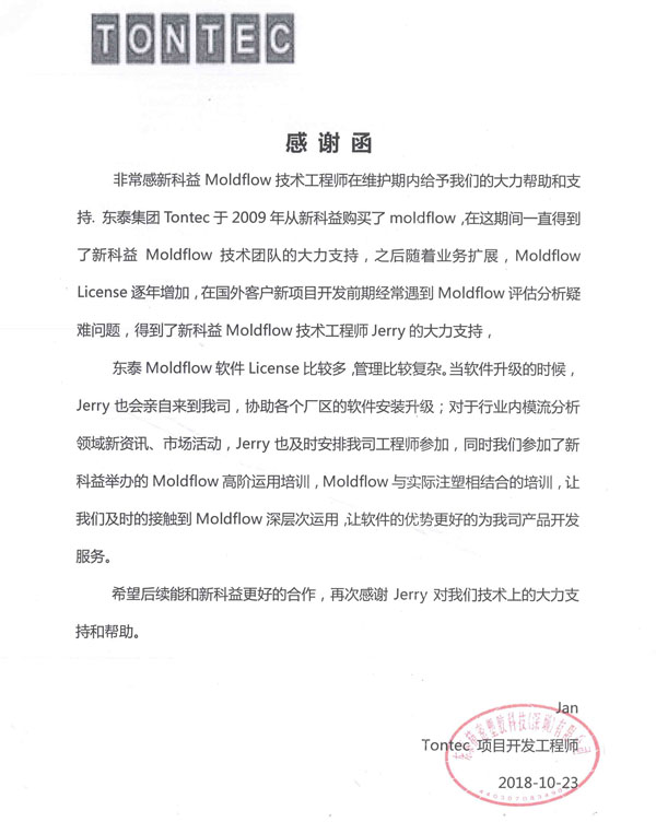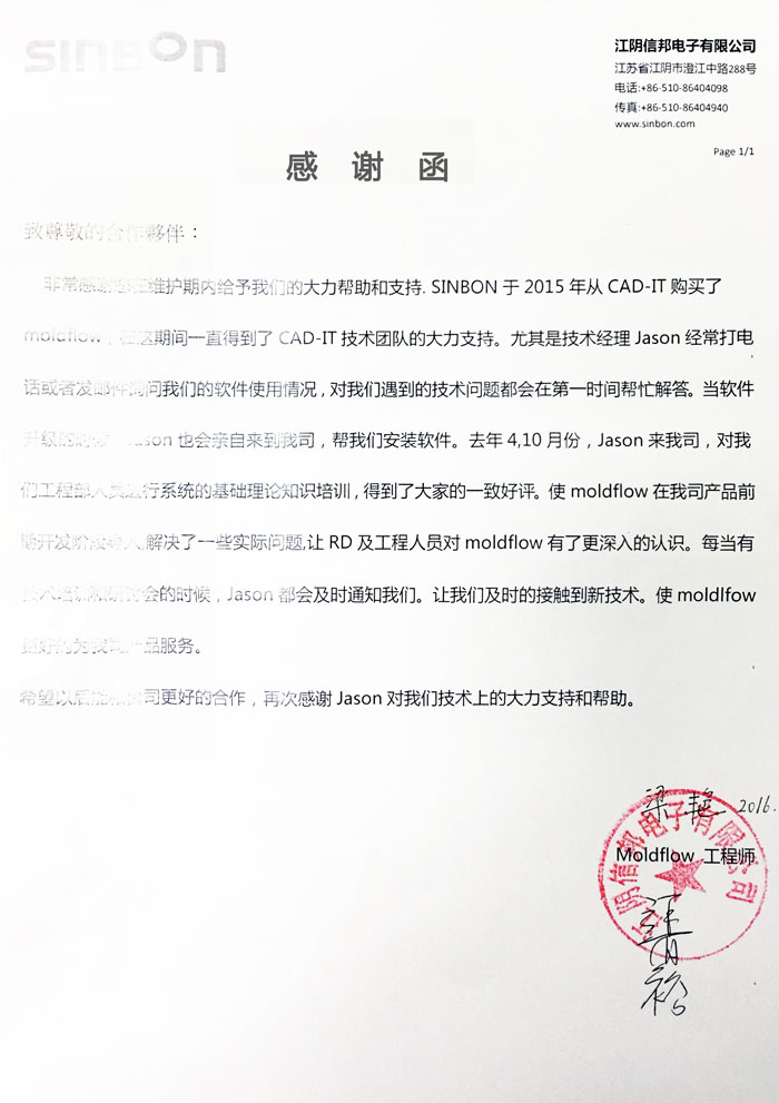 嘉興信元精密模具科技有限公司-感謝函