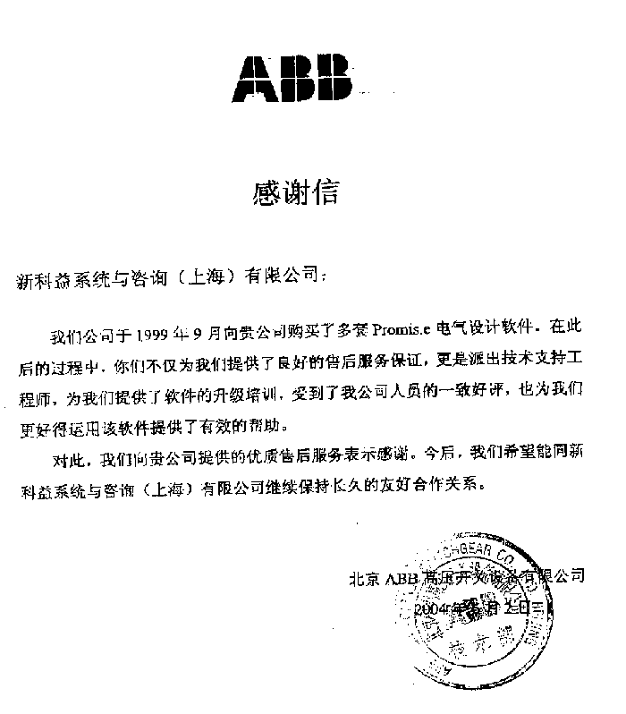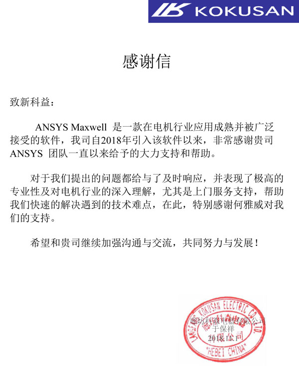 廊坊科森電器有限公司-感謝函