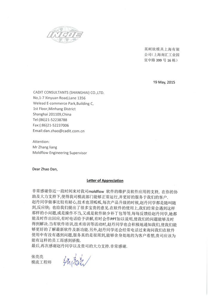 英柯歐模具(上海)有限公司-感謝函