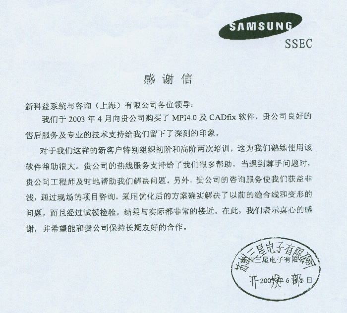 三星電腦-感謝函