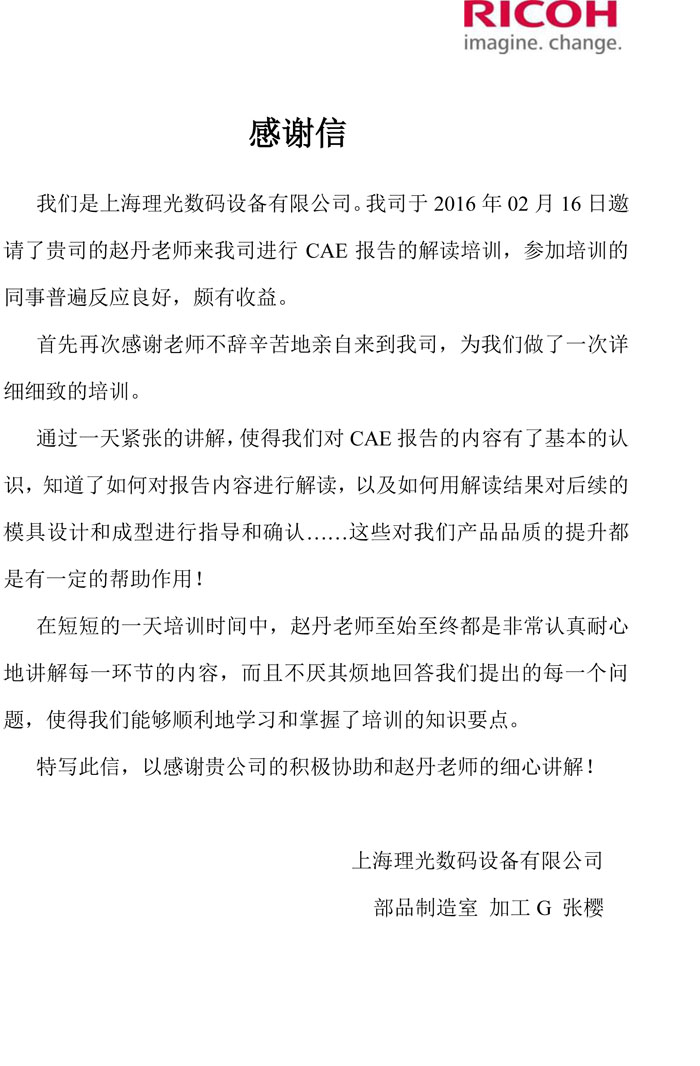 上海理光-感謝函